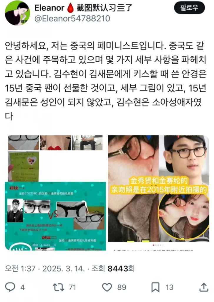 Mange koreanske internetbrugere mener, at den officielle meddelelse af skuespiller Kim Sui Hun blev frigivet den 7. marts og nægtede, at han var en historiker for den afdøde skuespillerinde Kim Sai.